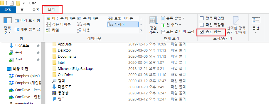 백업이 끝난 후에는 파일탐색기 실행 - 보기 - 숨김파일(체크해제) 해주세요~