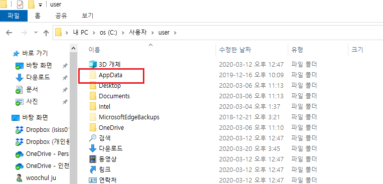 그러면 Appdata라는 숨김 폴더가 나타납니다.