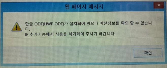 "한글 ODT(HWP ODT)가 설치되어 있으나 버전정보를 확인할 수 없습니다.