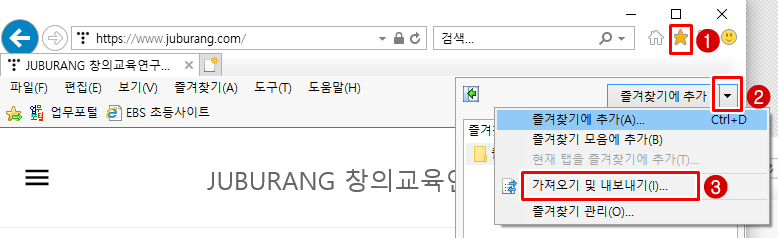 즐겨찾기 내보내기 방법과, 즐겨찾기 가져오기 방법이 같습니다. ^^
